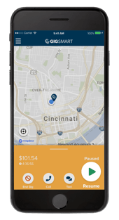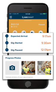 In the event of breaks or lunches, the Worker has the ability to pause gig by tapping the “Pause” button.