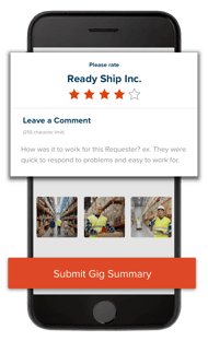 The Worker and the Requester have the ability to rate one another after a gig has ended. Keep in mind, once both ratings are submitted, both become viewable publicly, so make sure they are accurate and appropriate. Both the Worker and Requester are developing a digital resume that will impact their success on the app moving forward!