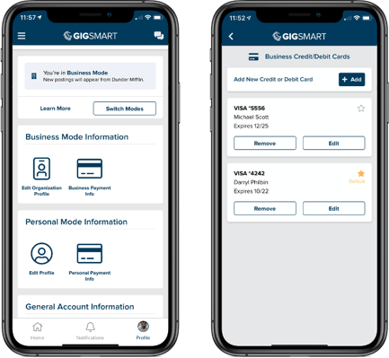 In addition, you’ll be able to add multiple credit cards to your account and set a default credit or debit card for payment. This allows you to clearly distinguish between your business and personal payment methods. You can easily select the card you’d like to use for payment before posting a Shift Gig or Full/Part-Time Position so that you can allocate payment the way your business requires it.